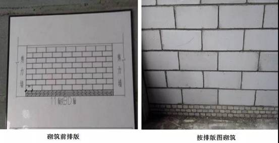 4. 確定標(biāo)高,立好皮數(shù)桿。第一層磚的標(biāo)高必須控制好,與磚層必須吻合,砌筑前將墻體按照層高畫出排版圖;