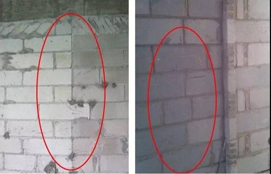 混水墻面組砌方法混亂,出現(xiàn)通縫和“二層皮”,組砌形式不當(dāng),形成豎縫寬窄不均