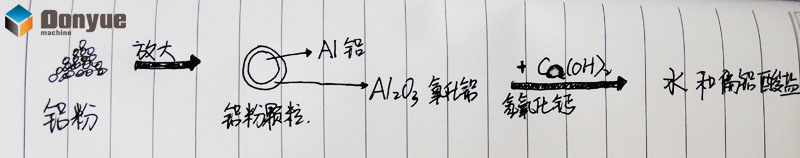 “加氣”過程核心的任務(wù)就是產(chǎn)生氣體,也就是作為發(fā)泡劑的鋁粉和水是產(chǎn)生氫氣。在小編看來主要包括三個(gè)步驟: